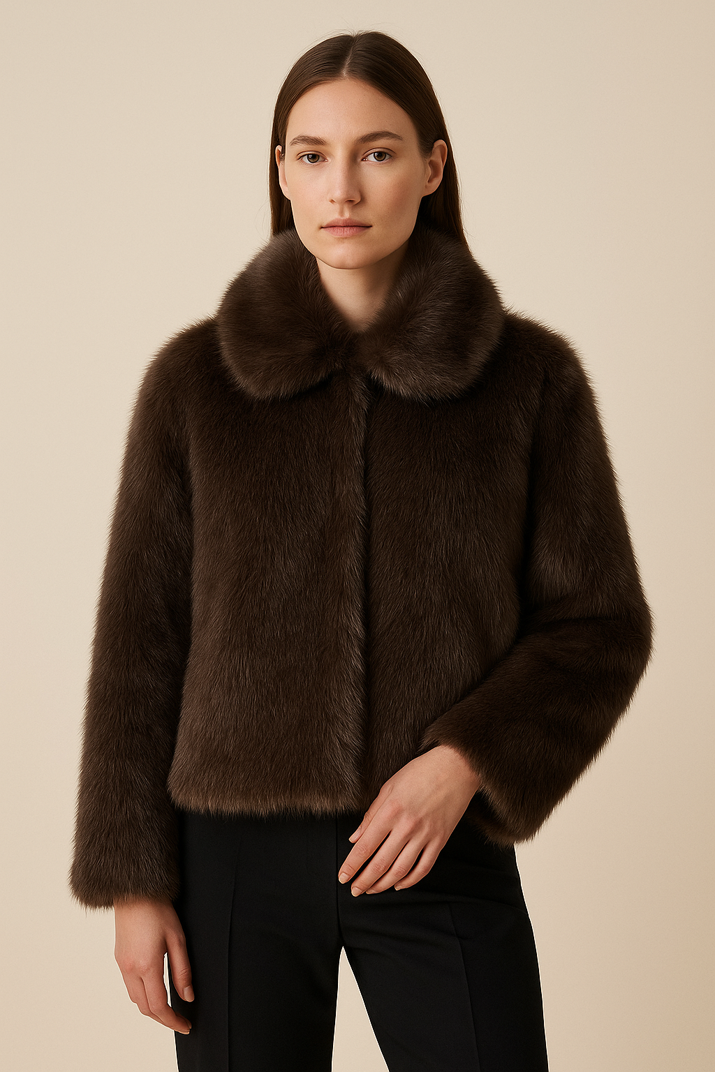 Thalia – luksuzni smeđi kaput od umjetnog krzna
